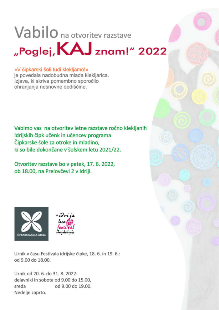 Najlepši čas v letu se zelo hitro približuje! V novoletni klekljarski delavnici se boste tokrat naučili, kako pri klekljanju uporabljati neobičajne materiale. Nastala bo zanimiva čipka, ki jo boste lahko uporabili v vaših novoletnih aranžmajih. Več informacij: Novoletna delavnica SLO + Dan odprtih vrat