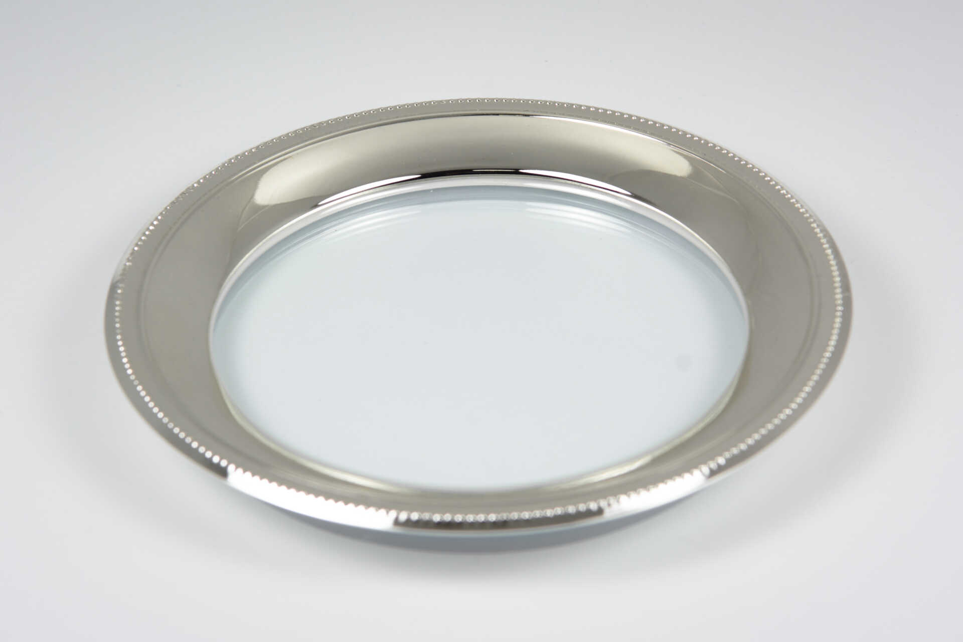 Manjši pladenj s srebrnim okvirjem za vstavljanje čipk.