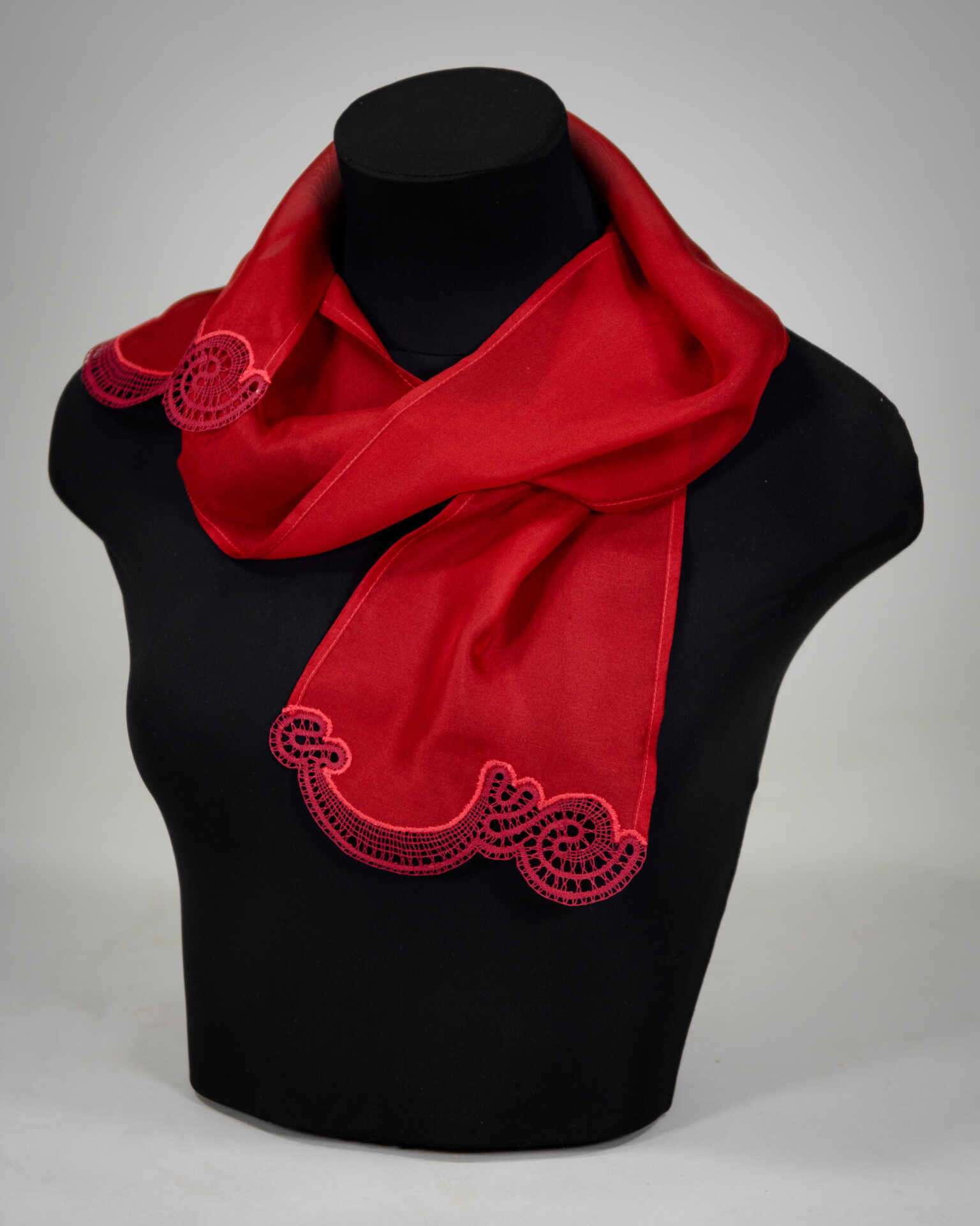 Silk scarf with high quality hand made Idrija lace.